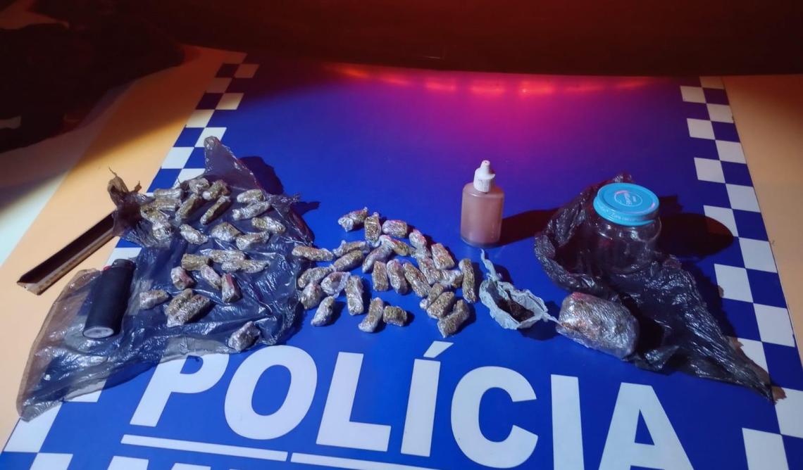 Após denúncias de moradores, policiais militares tomaram conhecimento de que homens estariam traficando drogas em uma praça do setor Laguna. A equipe policial prosseguiu com patrulhamento no local, e depararam-se com um adolescente que estava com uma pochete contendo 50 porções e um tablete de substâncias análogas à maconha.