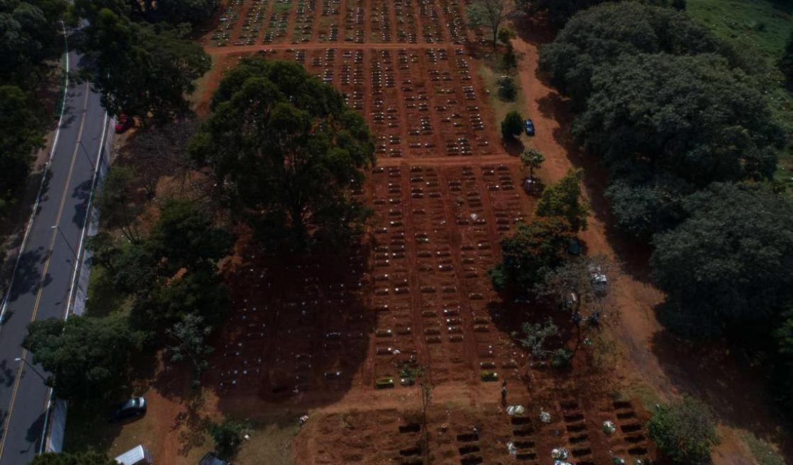 Fornecido por Folha de S.Paulo *ARQUIVO* SAO PAULO, SP, 27.04.2021: COTIDIANO - CORONAVIRUS - Ensaio em cemitério para o dia em que o Brasil atinge 400 mil mortos por Covid-19. Na foto, vista aérea de quadras com covas recentemente fechadas e abertas no Cemitério Vila Formosa, na manhã desta terça-feira. (Foto: Mathilde Missioneiro/Folhapress)