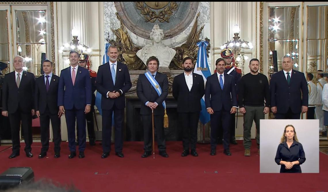 Poucos chefes de estado estiveram na posse de Milei, dentre eles o presidente da Armênia, Vahagn Khachaturyan; o rei da Espanha, Felipe VI; o primeiro-ministro da Hungria, Viktor Orbán; e o presidente da Ucrânia, Volodymyr Zelensky.