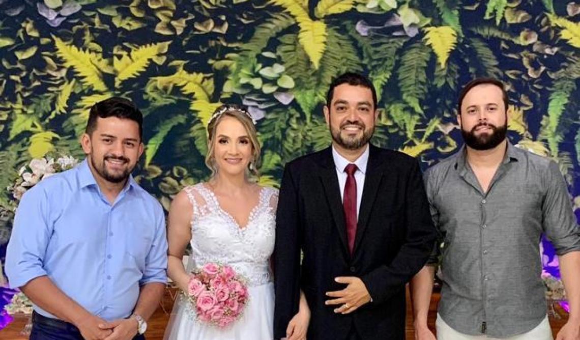 Diversos amigos, autoridades e lideranças locais marcaram presença na celebração do casamento que é oficializa a união do casal perante a igreja.