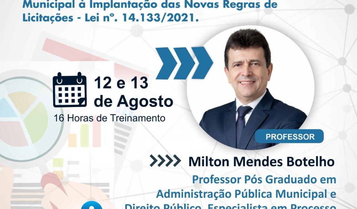 O instrutor Milton Mendes Botelho é Professor pós graduado em Administração Pública Municipal e Direito Público, especialista em Processo e Técnicas Legislativas.