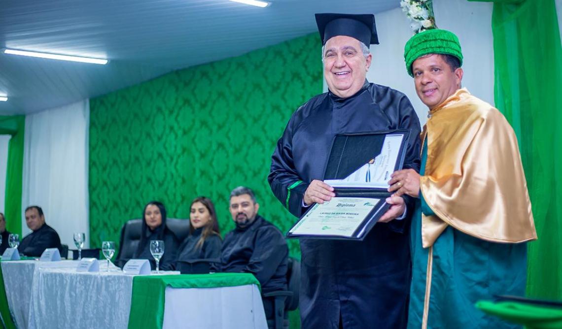 Título concedido pela Faculdade de Ciências Médicas e Jurídicas (Facmed), foi entregue pelo Dr. Nilton Elias de Sousa, presidente e procurador institucional da universidade
