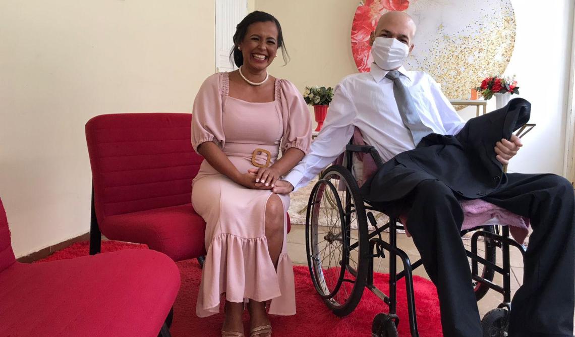 De cadeiras de rodas, ao entrar na Capela, era visível a emoção de Edivaldo ao receber no altar, a companheira Isleane Lima Nepomuceno, de 40 anos, para realizarem o grande sonho do matrimônio.