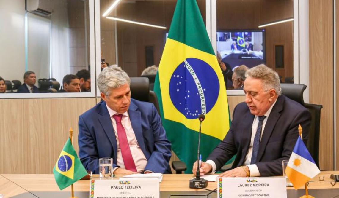 Com o objetivo de implantar projetos de desenvolvimento inovadores voltados aos agricultores familiares, o governador do Tocantins, Laurez Moreira, apresentou, nesta quarta-feira, 22, ao ministro do Desenvolvimento Agrário e Agricultura Familiar, Paulo Teixeira, em Brasília/DF, uma proposta para criação de um assentamento rural modelo na região sudeste do estado. O projeto abrangerá os municípios de Conceição do Tocantins, Arraias, Paranã, Natividade e Taguatinga, com a previsão de atender cerca de 5 mil famílias. O governador destacou que a iniciativa pode se tornar o maior assentamento do Brasil.