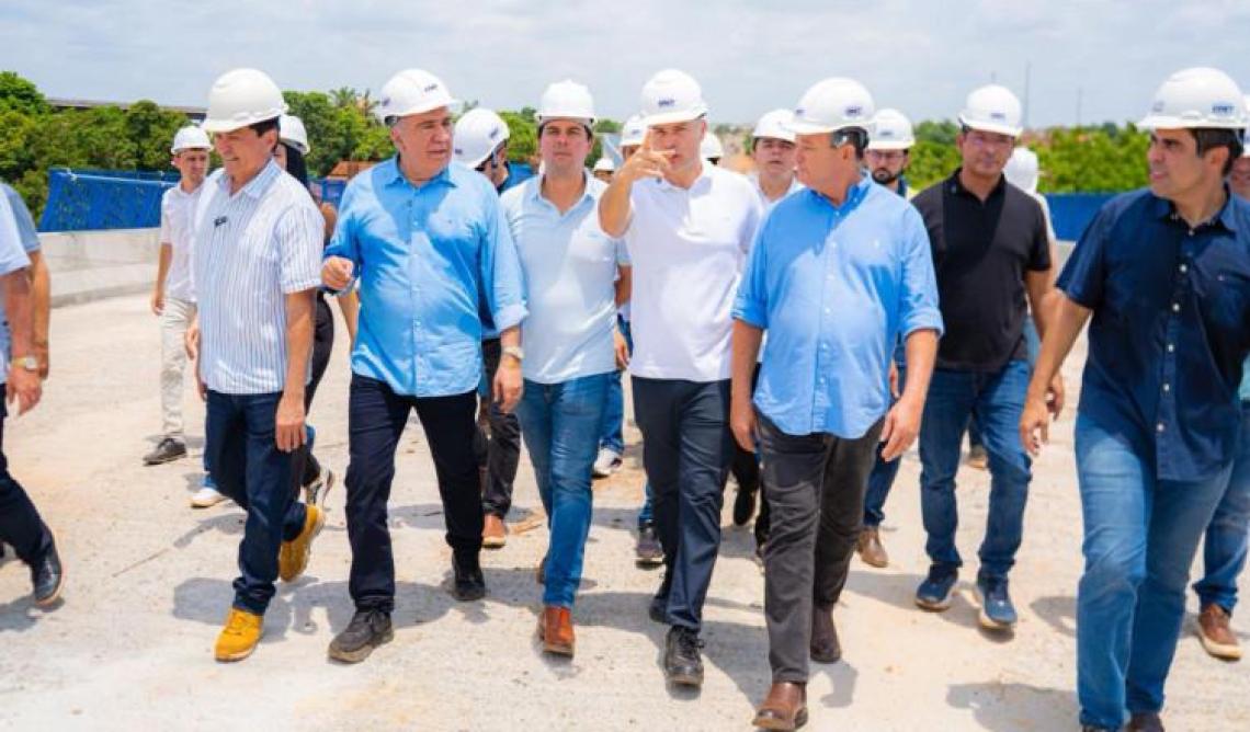 Momento histórico para os estados do Tocantins e do Maranhão; os governadores Laurez Moreira e Carlos Brandão, ao lado do ministro Renan Filho, anunciam a conclusão da nova ponte entre Aguiarnópolis e Estreito para dezembro
