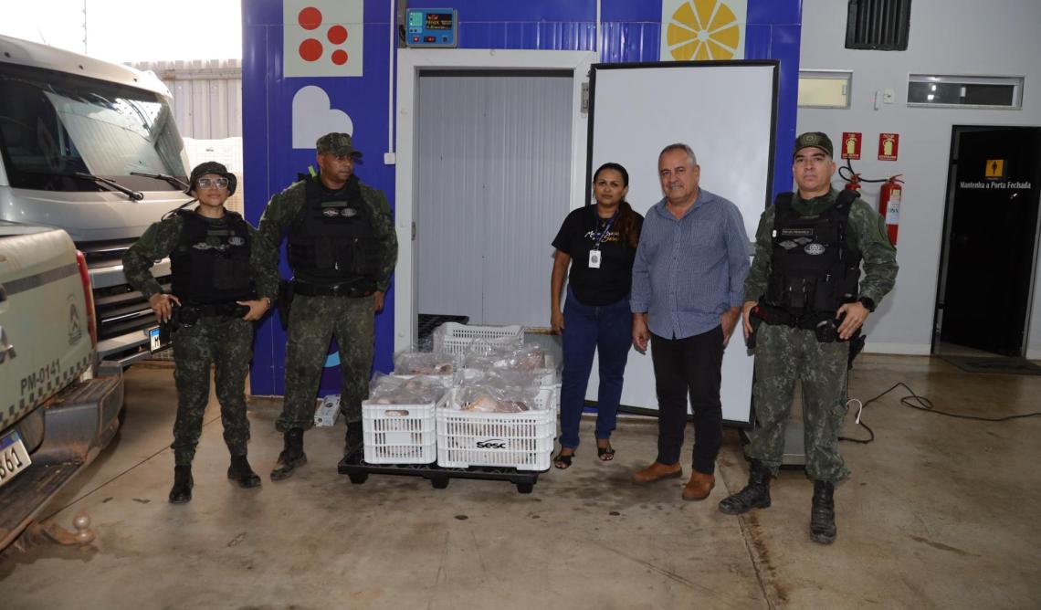 O Governo do Tocantins, por meio da Secretaria de Assuntos Institucionais, realizou neste sábado, 1º de novembro, a doação de peixes apreendidos pelo Batalhão de Polícia Militar Ambiental (BPMA) ao programa Sesc Mesa Brasil, em Palmas. Cerca de 350 kg de pescado, do tipo pirarucu, foram apreendidos durante a Operação Protetor dos Biomas, na zona rural do município de Lagoa da Confusão, após flagrante de pesca proibida durante o período de defeso (piracema) e porte ilegal de arma de fogo de uso permitido.