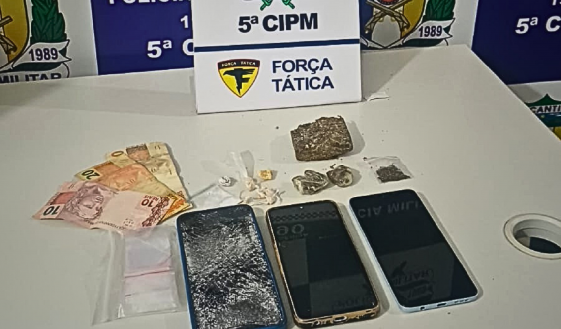 Equipe de Força Tática da 5ª CIPM apreendeu maconha, cocaína, crack, dinheiro e aparelhos celulares durante operação no setor Laginha