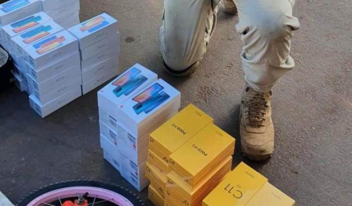No total, foram encontrados 10 celulares C11 Realme, 10 celulares Poco M3, 10 celulares Redmi Note9, 10 Redmi 9C, 10 Redmi 9A, 10 Redmi 9T, 1 Redmi Note 10S, 253 capinhas de celulares, 5 fontes de carregadores de celulares, 4 relógios e 4 caixas de película.