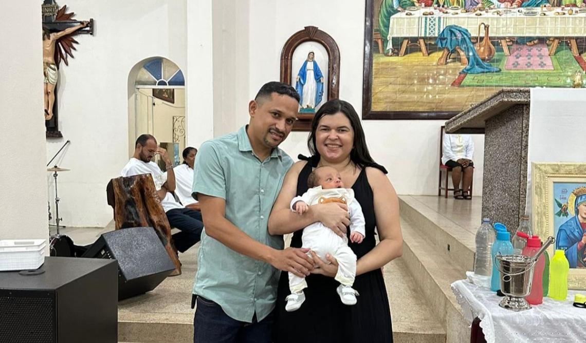 Os pais do bebê estão encantados com o pequeno que é o xodó da família.