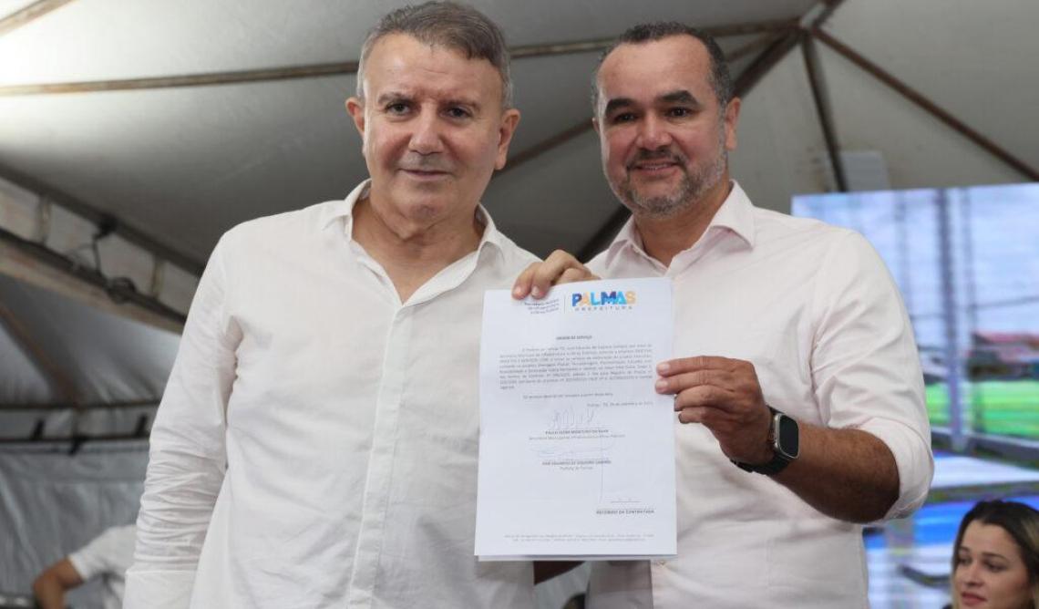 O prefeito de Palmas, Eduardo Siqueira Campos, assinou nesta sexta-feira, 29, a autorização para a elaboração do projeto executivo de obras de infraestrutura urbana no setor Irmã Dulce, localizado na região sul da Capital. A assinatura foi realizada durante a solenidade de anúncio da obra do Centro Comunitário Esportivo Arena Brasil para o setor, com a presença do ministro do Esporte, André Fufuca, demais autoridades, lideranças comunitárias e moradores da região.