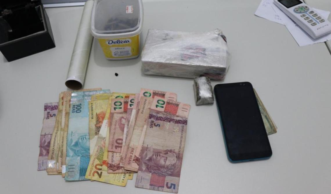 Em seguida o homem foi conduzido para a delegacia da Polícia Civil juntamente com a droga e outros objetos ilícitos e posteriormente apresentado à autoridade policial.